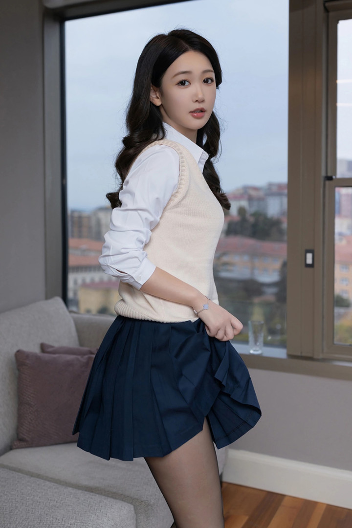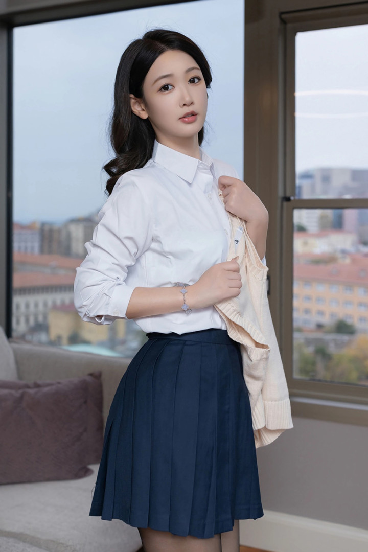33 岁唐安琪 “校服风” 穿搭! 肉丝袜 + 百褶裙, 优雅身材碰撞青春感